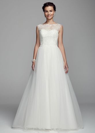 Cap Sleeve Tulle Wedding Dress With Illusion Neck David S Bridal