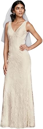 Flower Lace V Neck Wedding Dress With Empire Waist David S Bridal Davids Bridal Wedding Dresses V Neck Wedding Dress Sheath Wedding Dress Lace