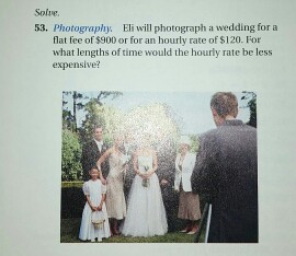 Eli Will Photograph A Wedding For A Flat Fee Of 900 Or For An Hourly Rate Of 120 For What Length Of Time Would The Hourly Rate Be Less Expensive Study Com