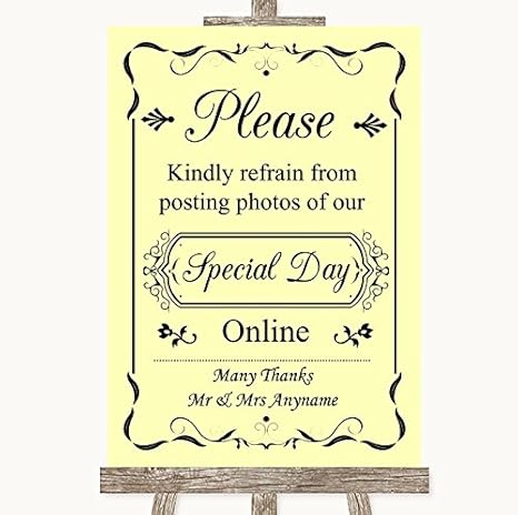 Amazon Com Yellow Don T Post Photos Online Social Media Personalized Wedding Sign Office Products