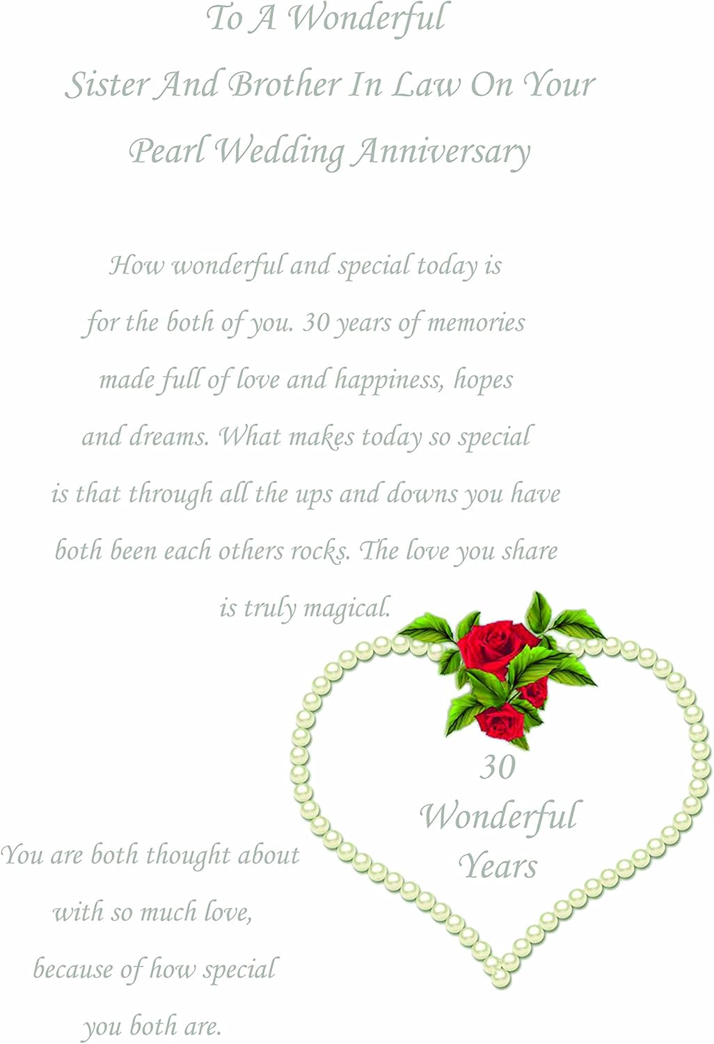 Brother Sister In Law 30th Wedding Anniversary Card On Your Pearl Anniversary 30 Years Sentimental Verse Amazon Co Uk Office Products