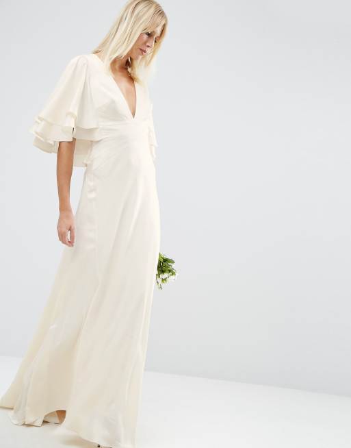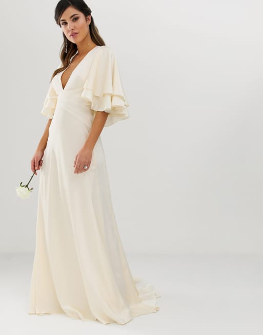 Asos Edition Satin Panelled Wedding Dress With Flutter Sleeve Cream Milanstyle Com