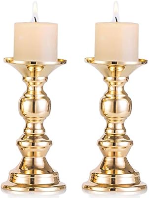Nuptio Set Of 2 Gold Candlestick Metal Pillar Candle Holders Wedding Centerpieces Candlestick Holders For 2 Inches Candles Stand Decoration Ideal For Weddings Special Events Parties Amazon Sg Home