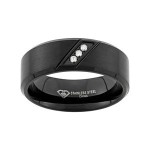 Diamond Accent Three Stone Slant Wedding Band In Black Ip Stainless Steel Size 10 5 Piercing Pagoda