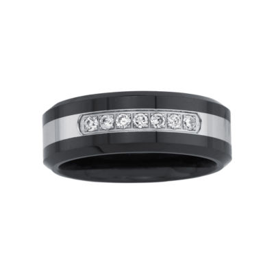 1 6 Carat T W Stainless Steel Black Ceramic Wedding Band Men