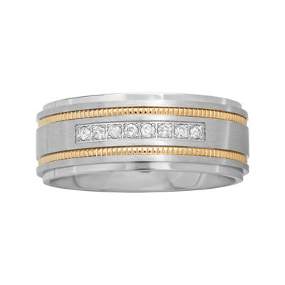 Mens Two Tone Stainless Steel 1 7 Ct T W Diamond Wedding Band Color Two Tone Jcpenney