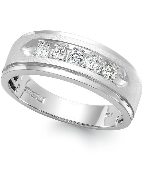 Macy S Men S Five Stone Diamond Ring In 10k White Gold 1 Ct T W Reviews Rings Jewelry Watches Macy S